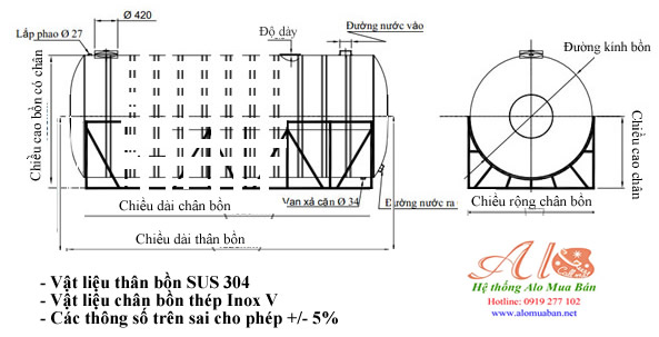 Lưu ý: Các dung tích bồn inox có dung sai nên không thể dùng bồn chứa nước làm dụng đo lường hoặc định lượng. Nếu quý khách dùng để đo lường hoặc định lượng thì phải báo để đặt hàng trước với nhà sản xuất.
