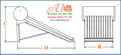 Kích thước máy nước nóng mặt trời Ferroli 200l