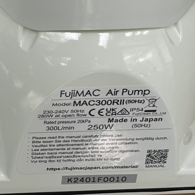 Thông số kỷ thuật Máy bơm sục oxy FujiMAC MAC300RII